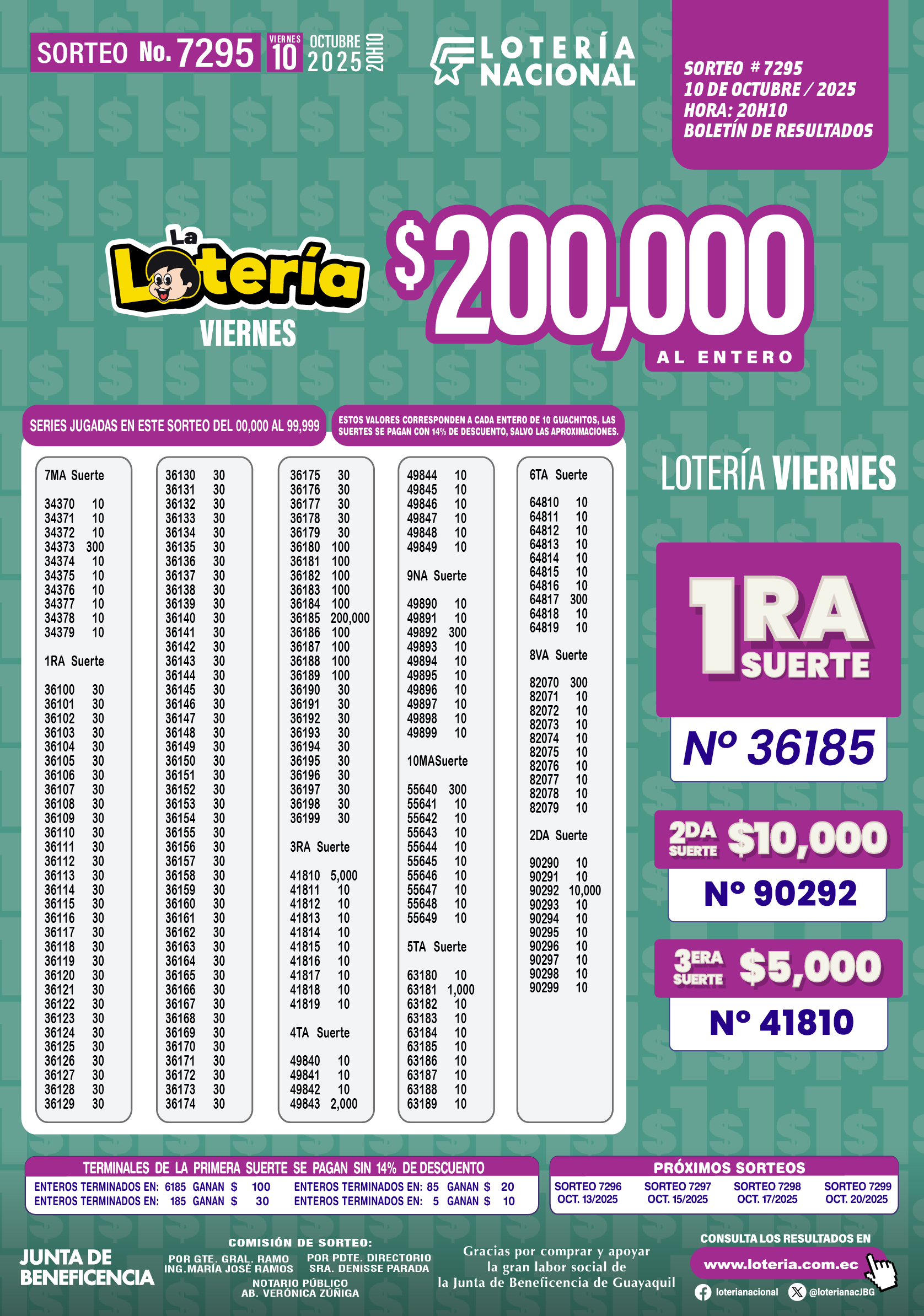 Resultados de Loteria Nacional 7295