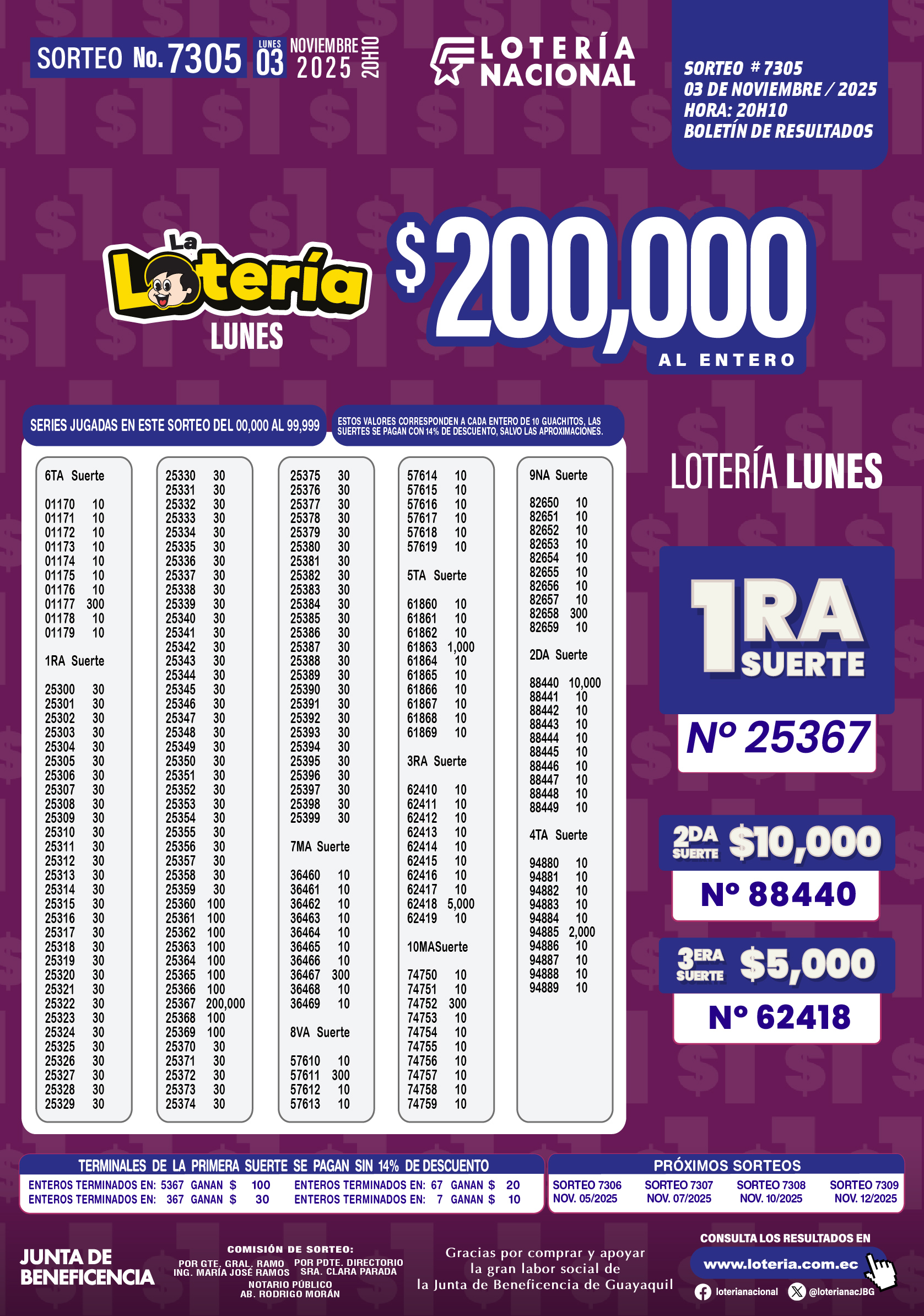 Resultados de Loteria Nacional 7305