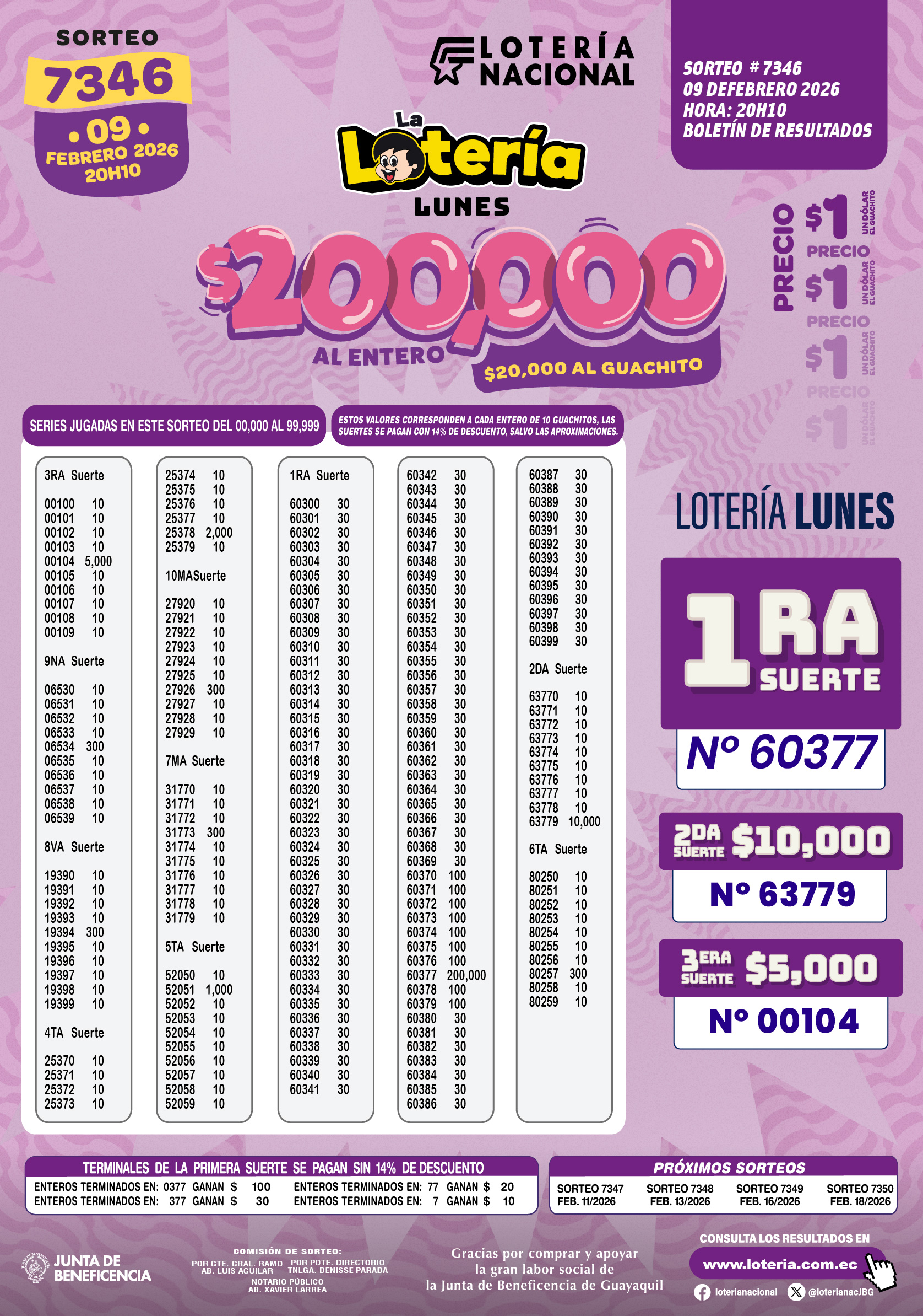 Loteria Nacional del 09/02/2026