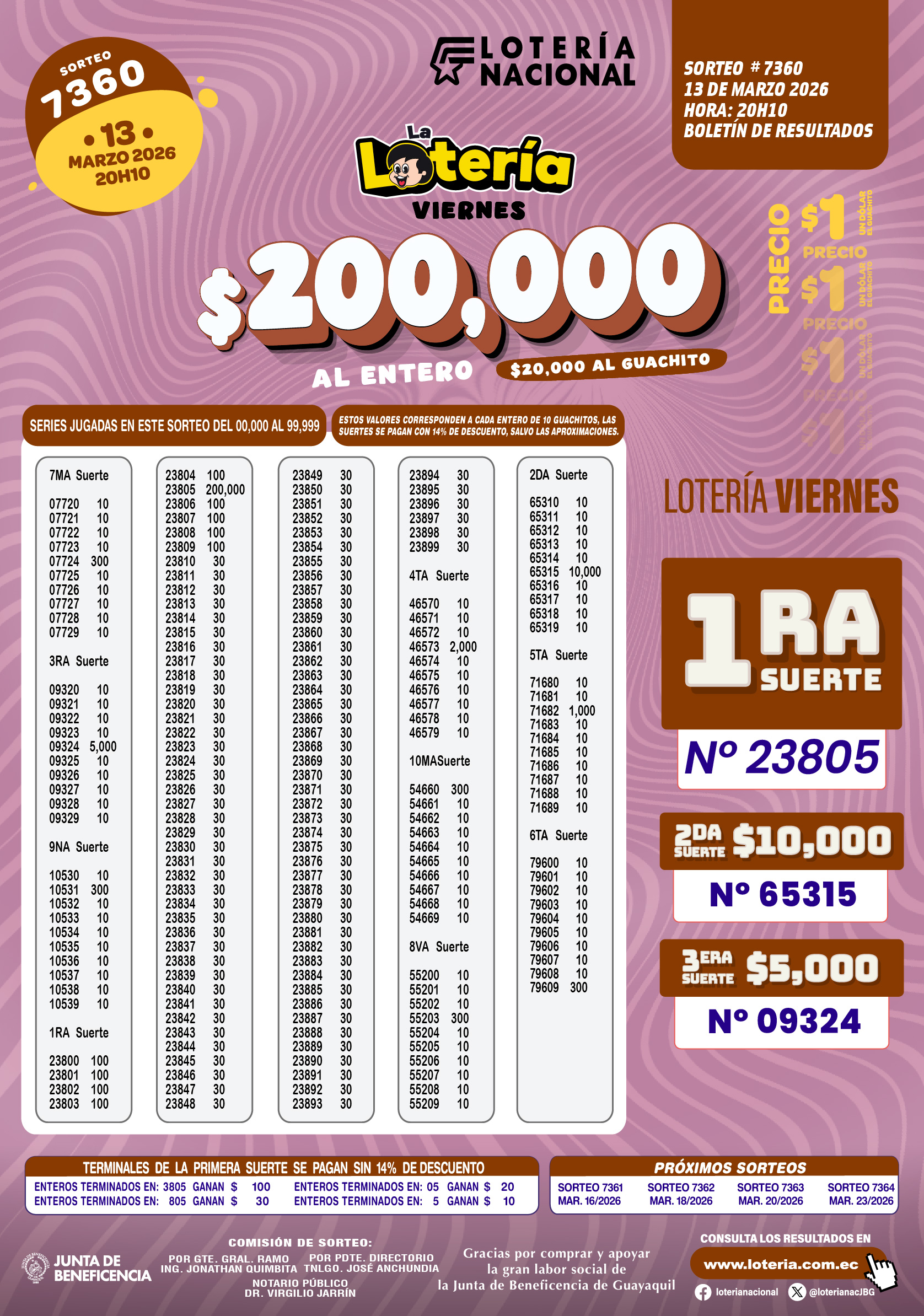 Resultados de Loteria Nacional 7360Lista de Lotería