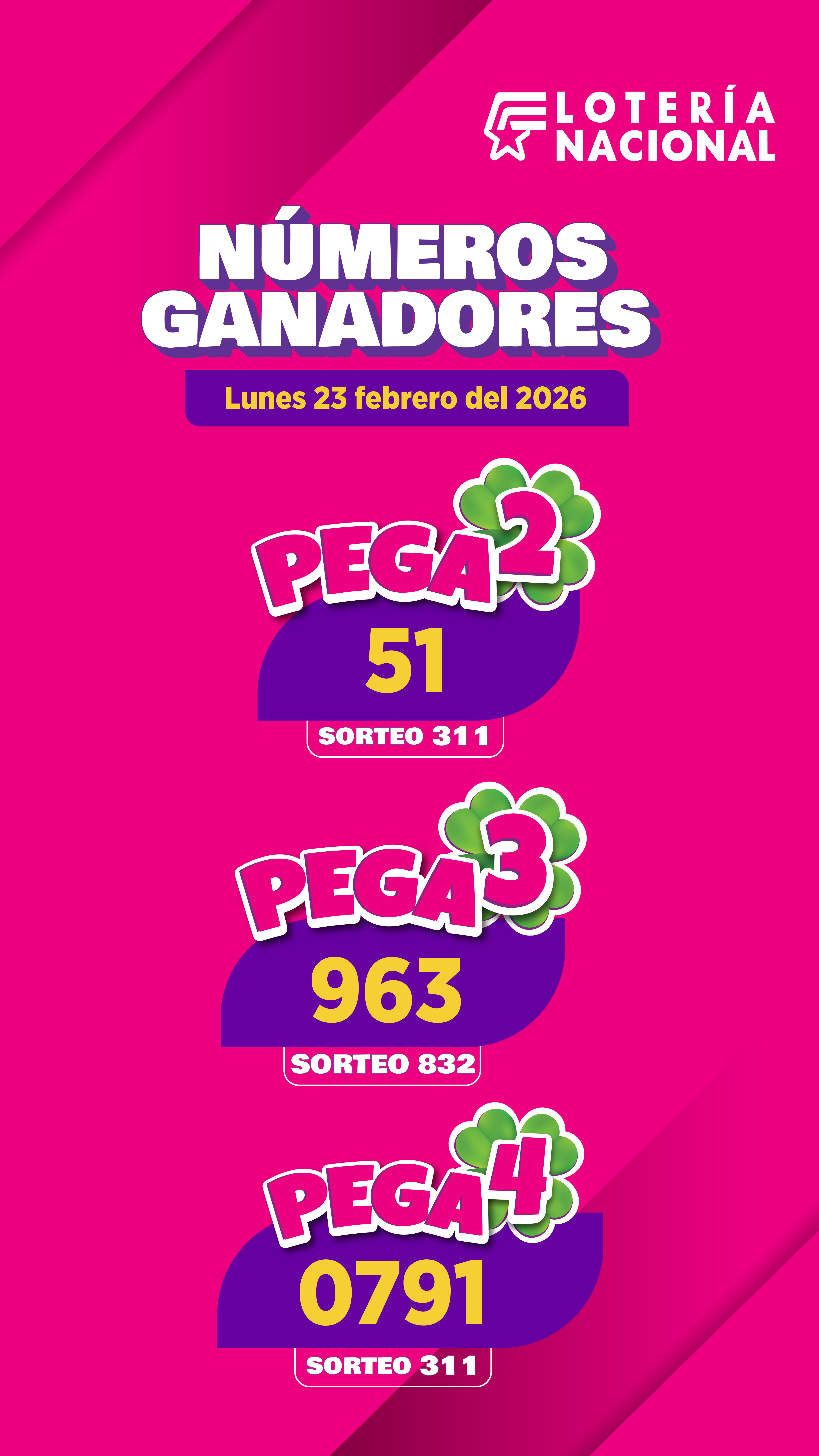 Resultados Pega3 del Lunes 23 de Febrero de 2026