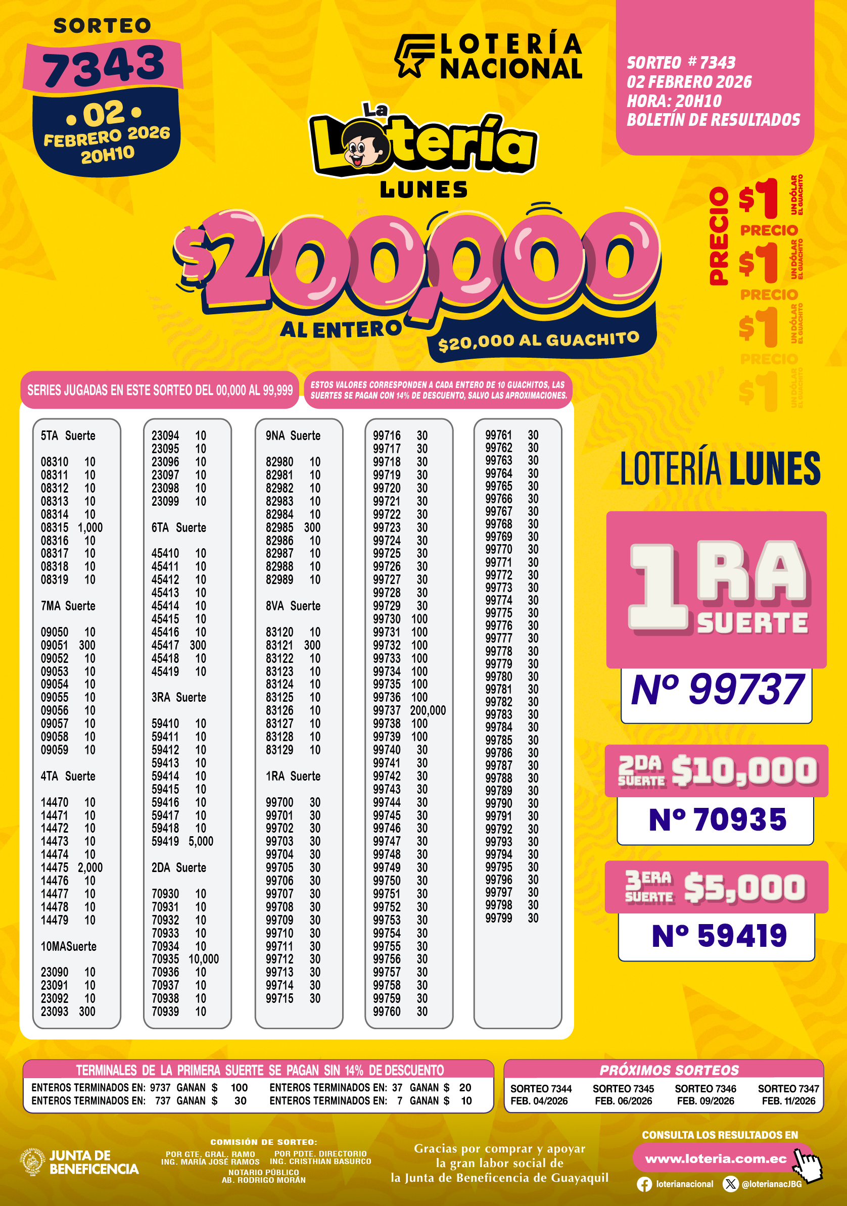Resultados de Loteria Nacional 7343